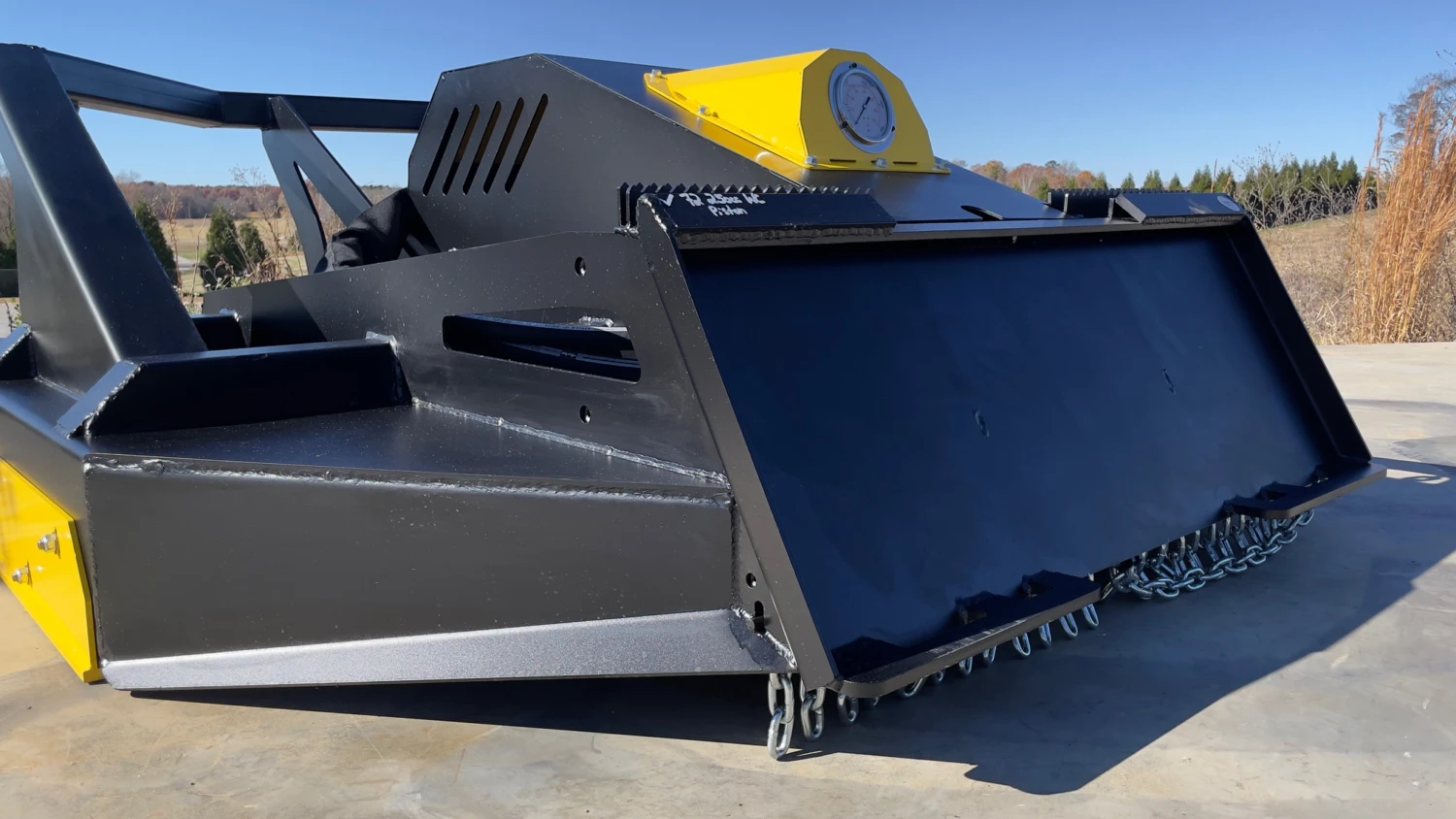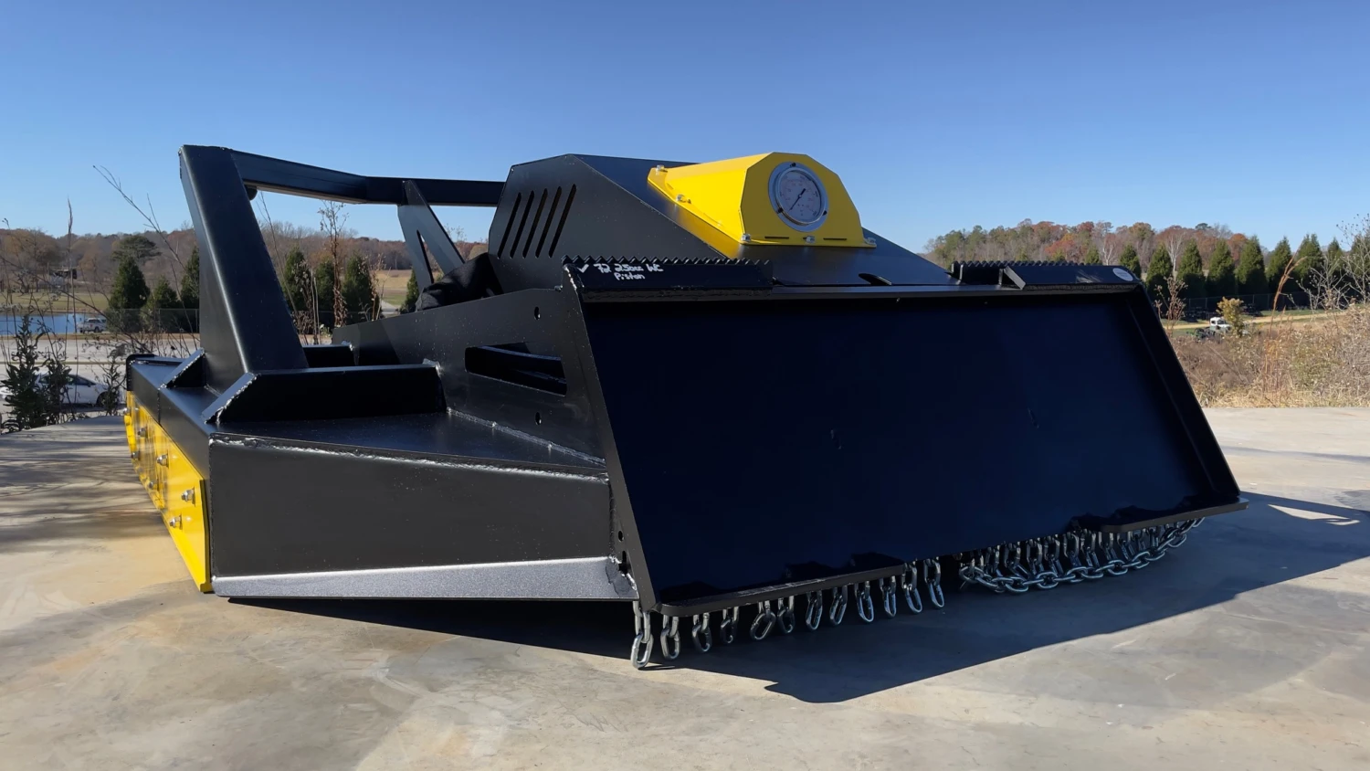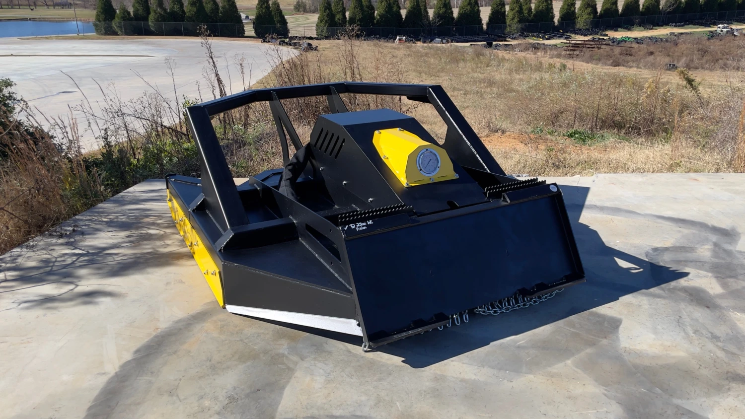 Open-front, severe-duty brush cutter featuring a fully enclosed proprietary direct-drive, forged steel axle, and reinforced 1/4″ deck. Built for aggressive entry cutting and fast land clearing on standard skid steers. Low-flow and high-flow versions available.