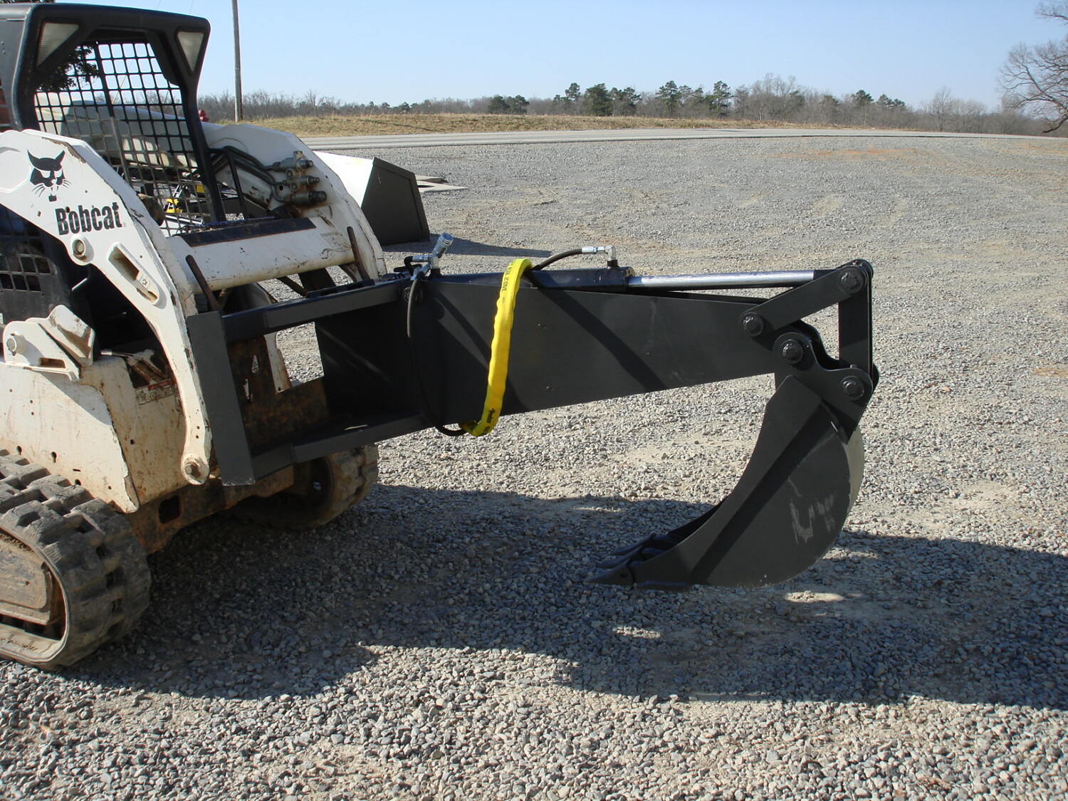 Overview. Skid-steer mounted backhoe attachment for trenching and digging with compact reach and control.