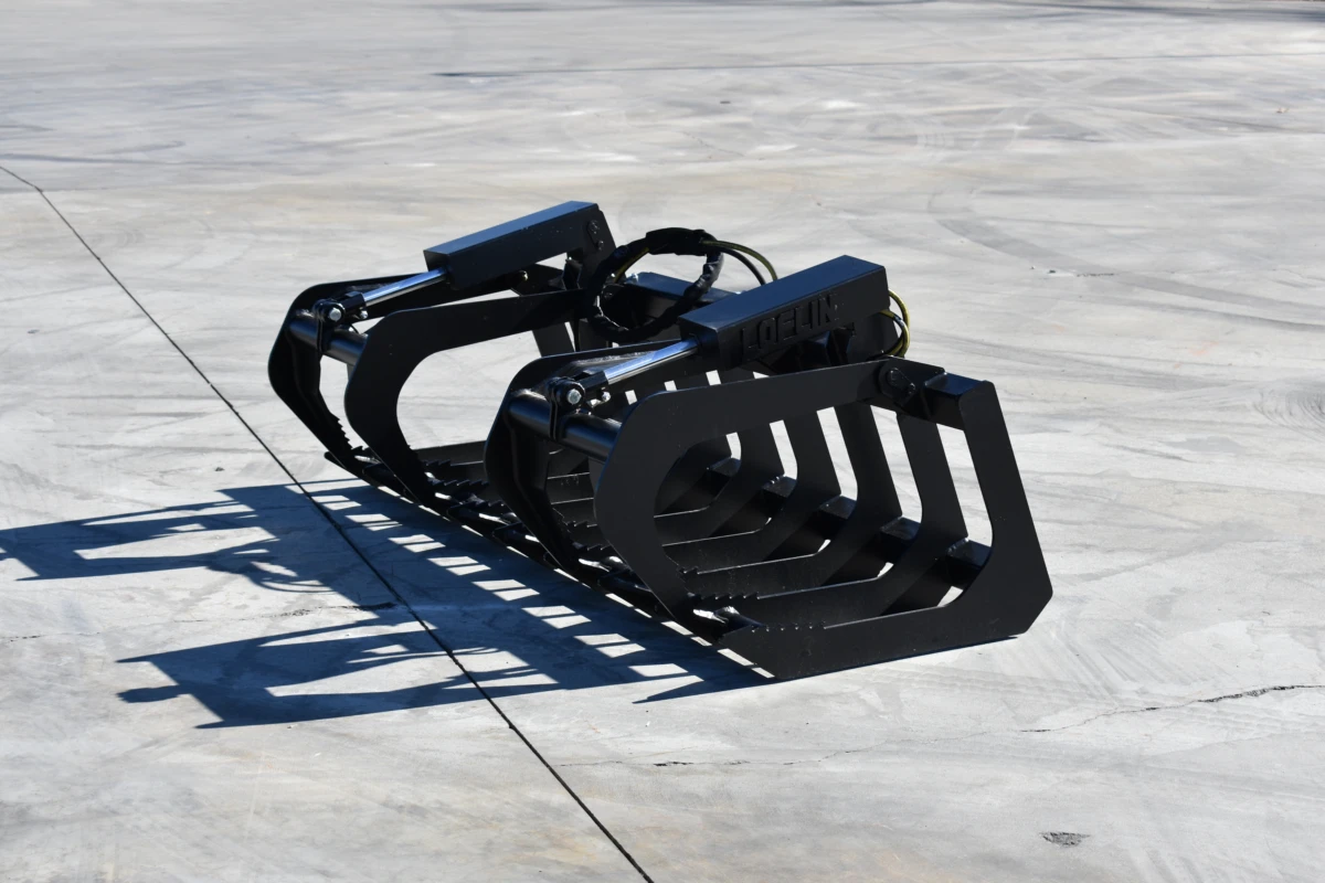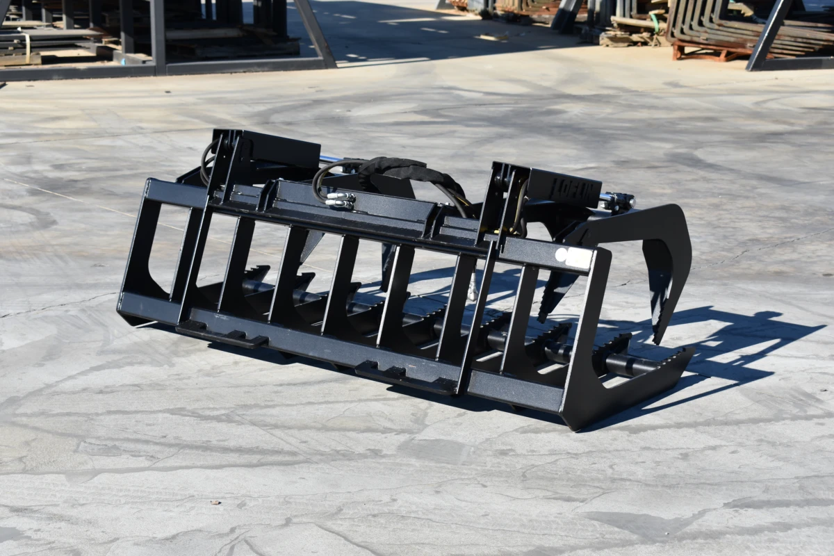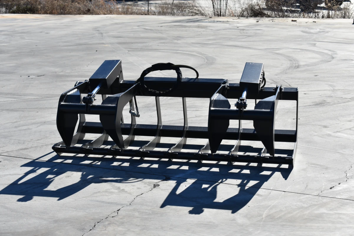 skid steer grapple, root grapple, brush grapple, heavy-duty grapple attachment, forestry grapple, debris handling, universal quick-attach grapple, land clearing attachment