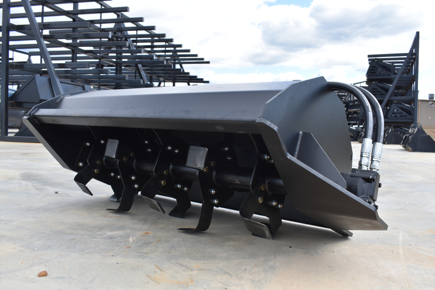 The mini tiller is a high-performance attachment designed to make ground preparation fast, easy, and effective. Powered by a robust hydraulic motor and engineered for rugged use, this rotary tiller is perfect for breaking tough soil, mixing in nutrients, and creating a smooth, plant-ready surface.