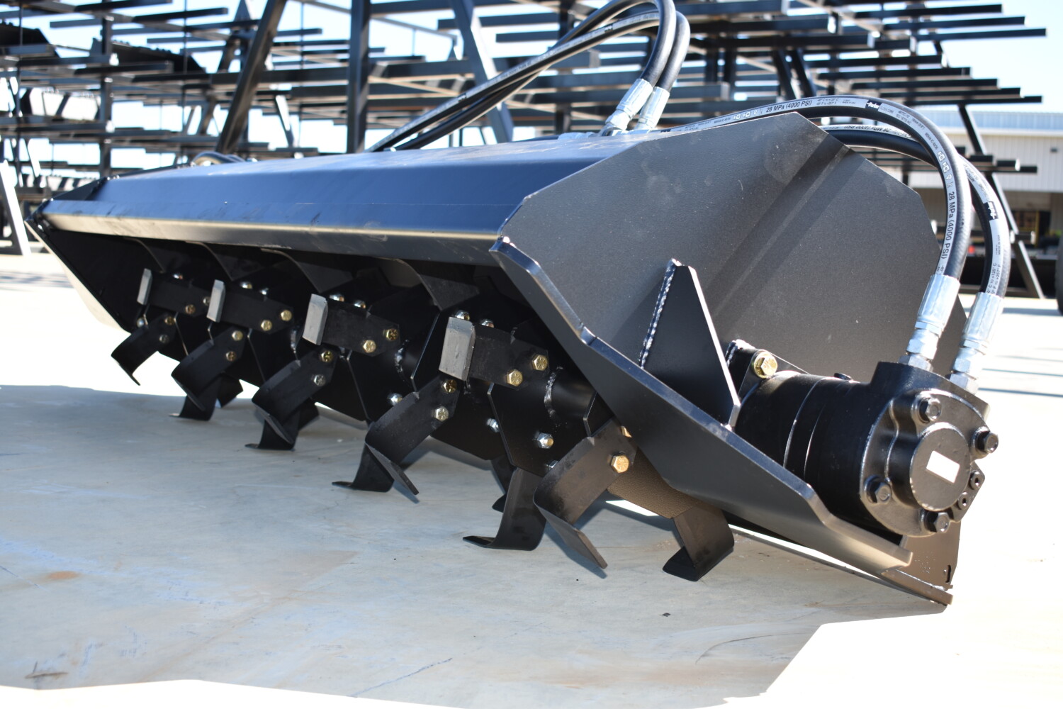 The skid steer tiller is a high-performance attachment designed to make ground preparation fast, easy, and effective. Powered by a robust hydraulic motor and engineered for rugged use, this rotary tiller is perfect for breaking tough soil, mixing in nutrients, and creating a smooth, plant-ready surface.
